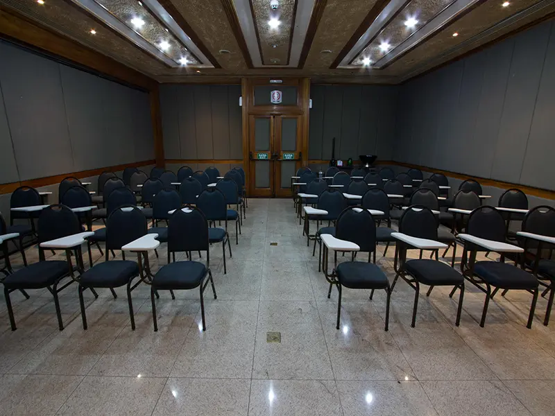 Nossas salas incluem Wi-Fi de alta velocidade, mesas e cadeiras. Equipamentos audiovisuais, como projetores, microfones e sistema de som, podem ser contratados separadamente.