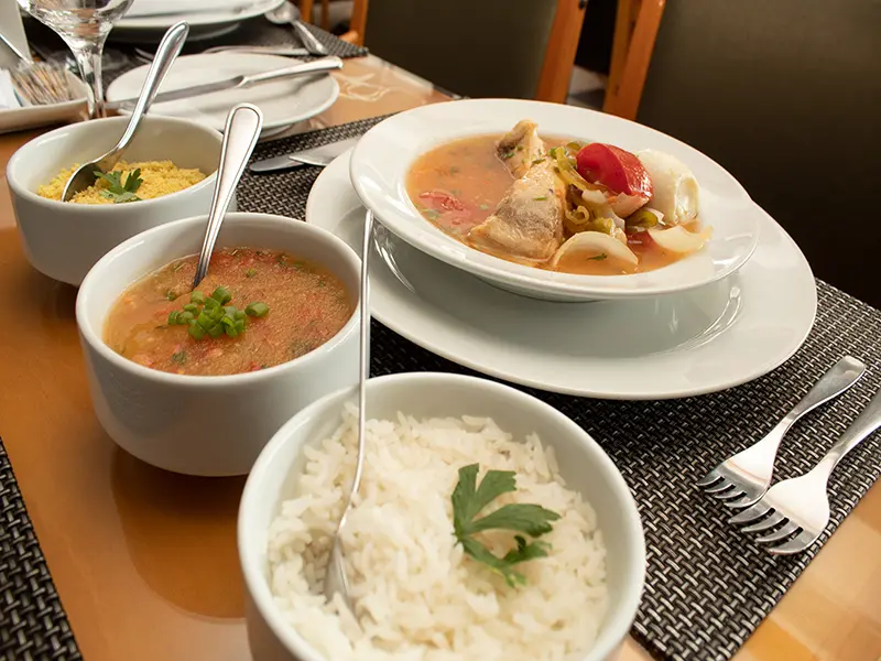 Descubra a riqueza e diversidade da culinária amazônica em nosso restaurante. Cada prato é uma celebração dos sabores únicos da região, preparados com ingredientes frescos e técnicas que respeitam a tradição local. Uma experiência gastronômica que conecta você à essência da Amazônia.